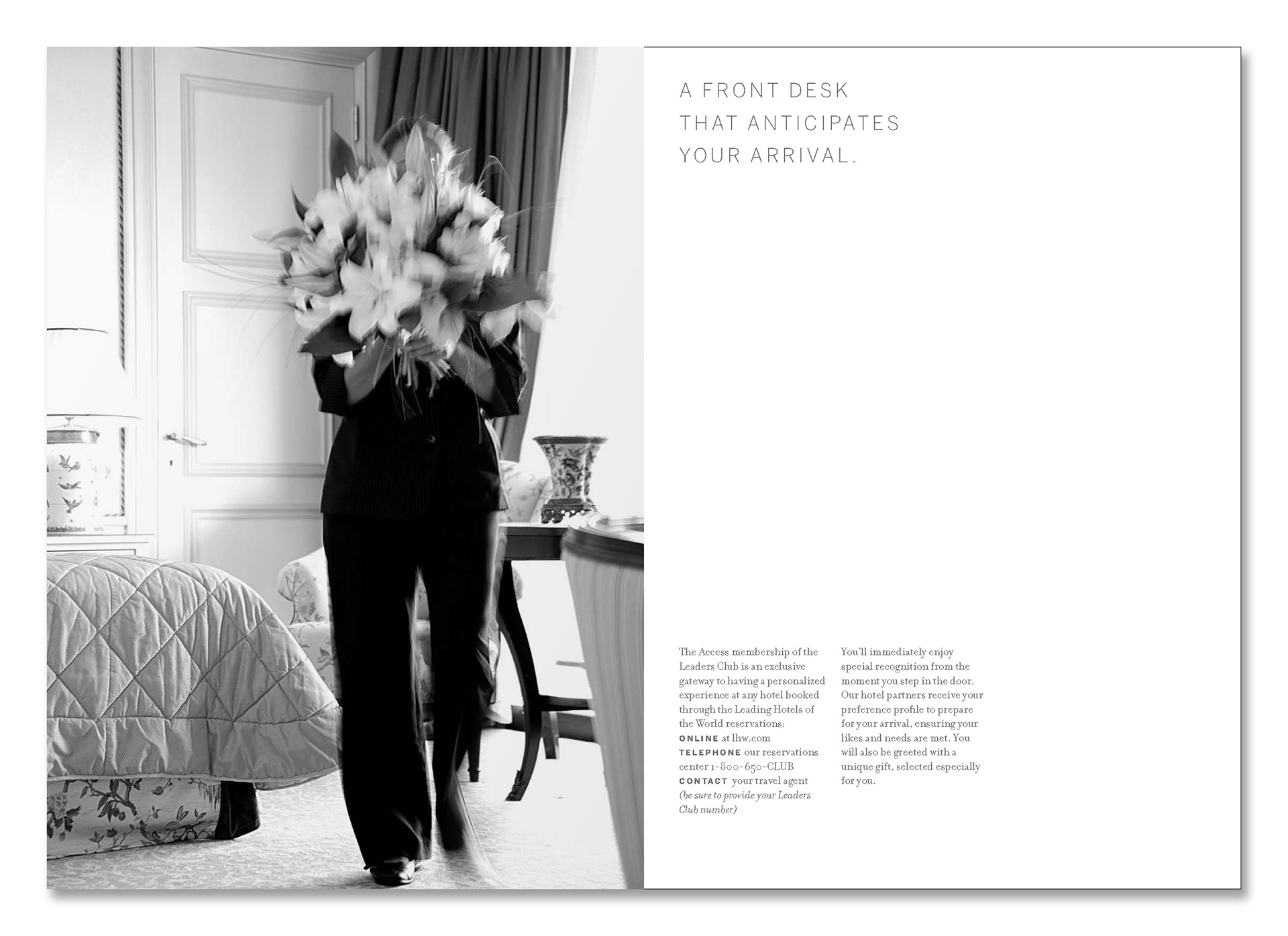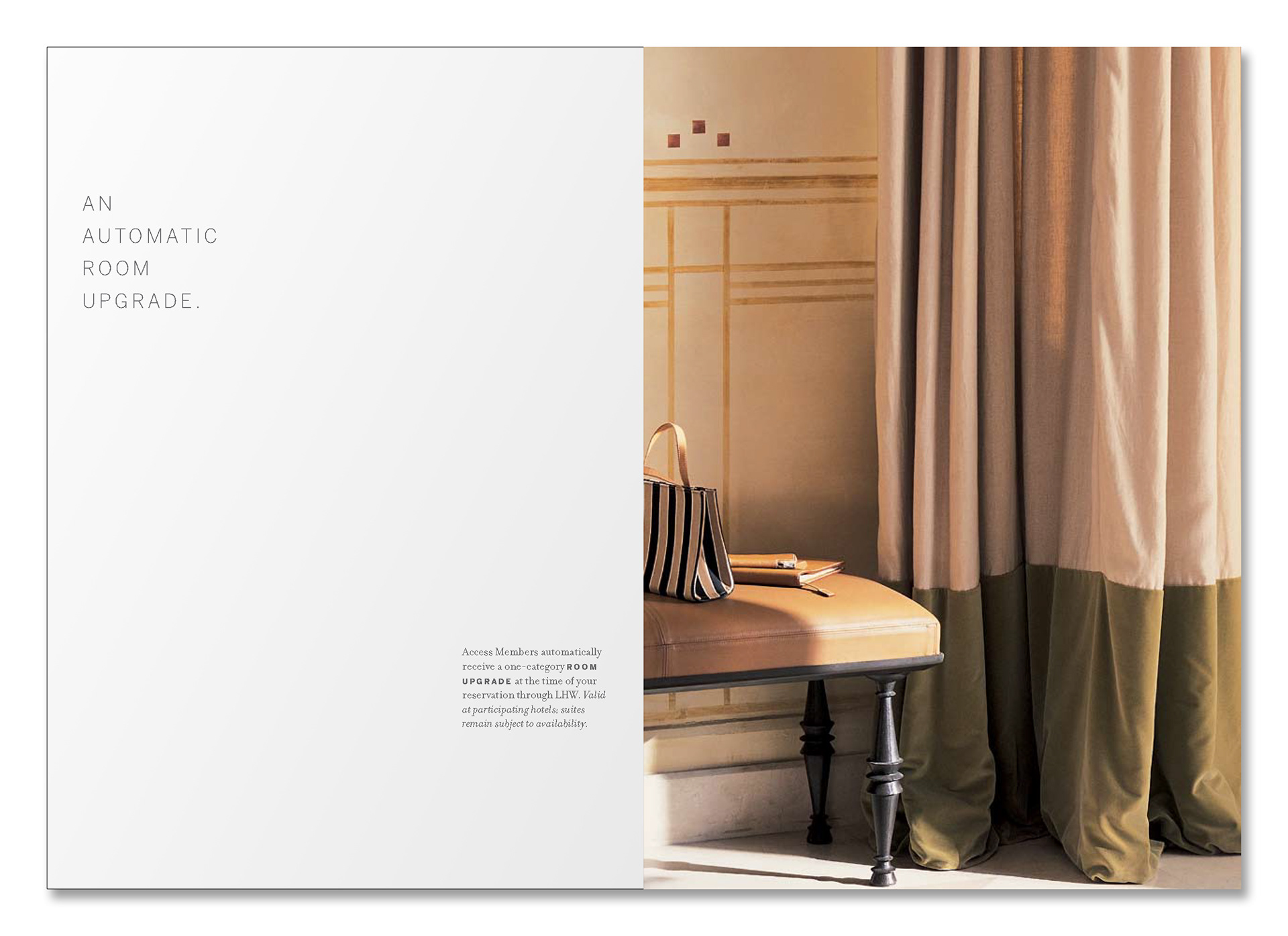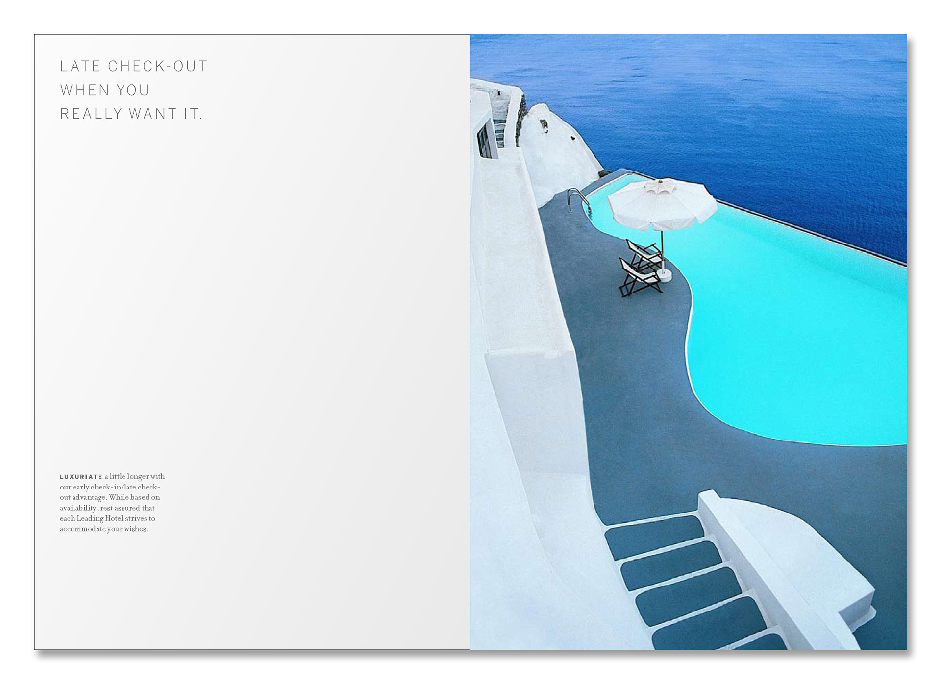 Leading Hotels of the World is a luxury hotel group that represents a vetted group of uncommon hotels around the globe. I proposed this design and copy for the membership brochure to the Leaders Club, a program that offers exclusive benefits.
