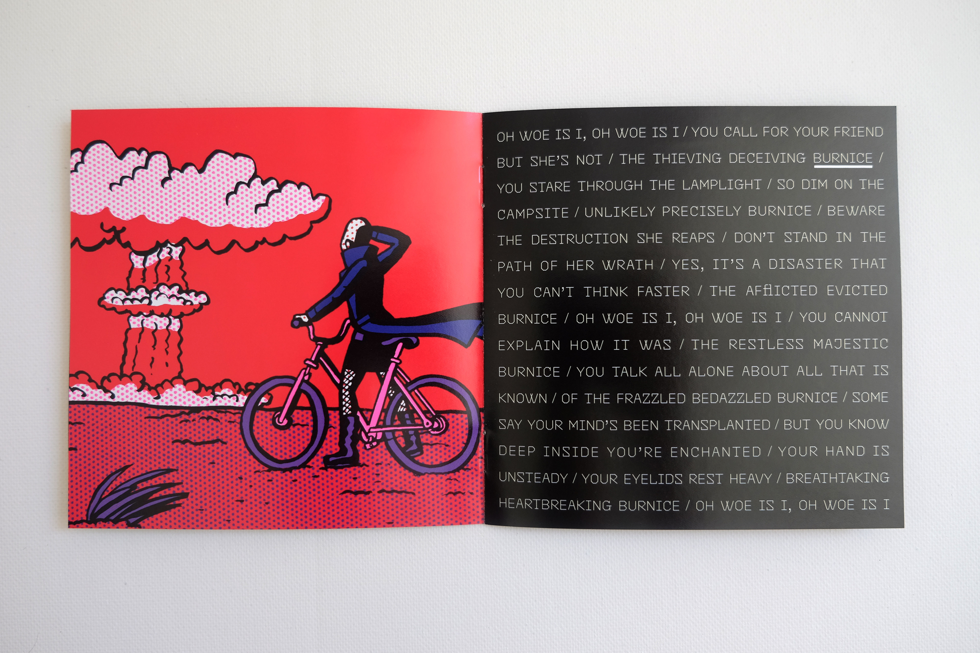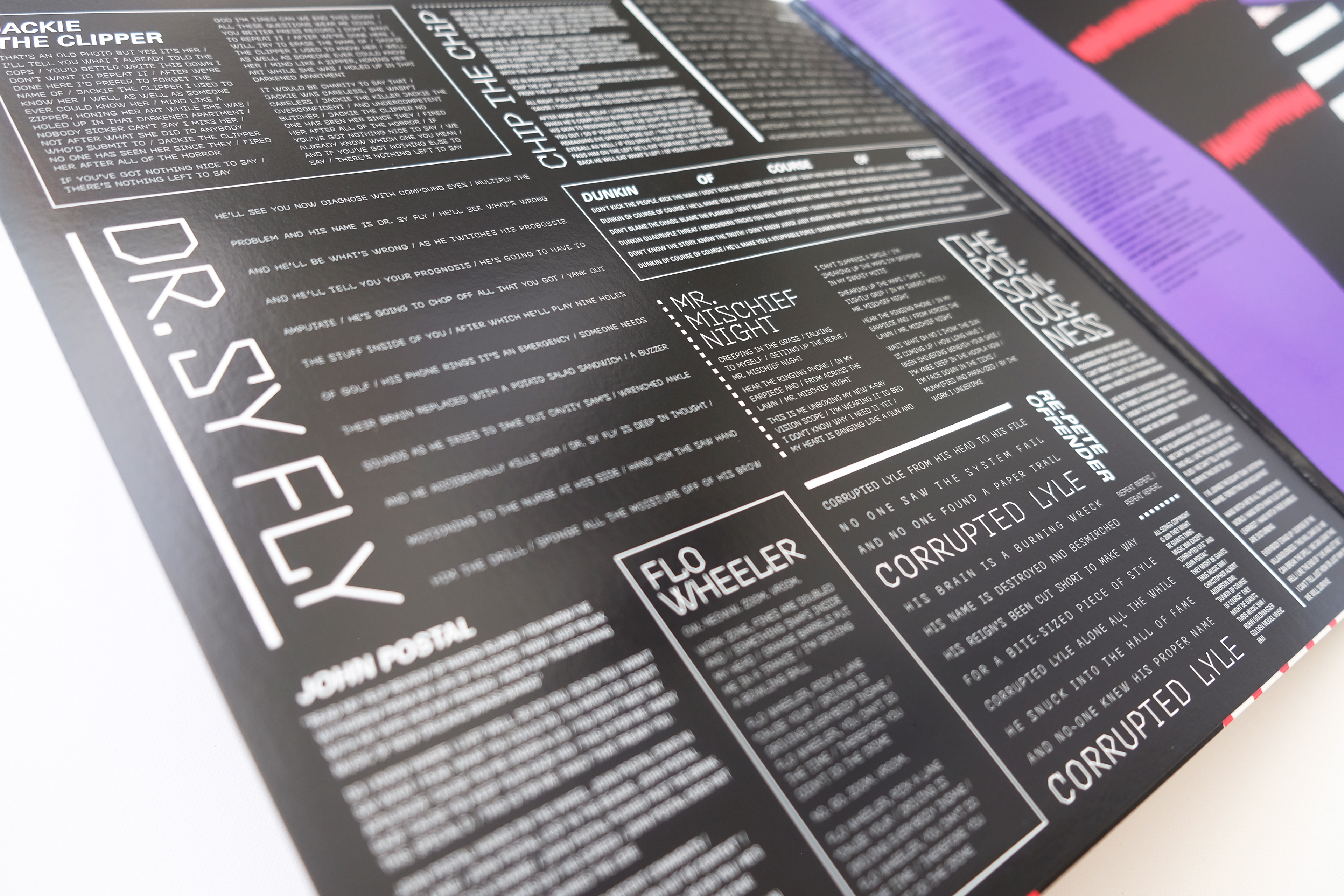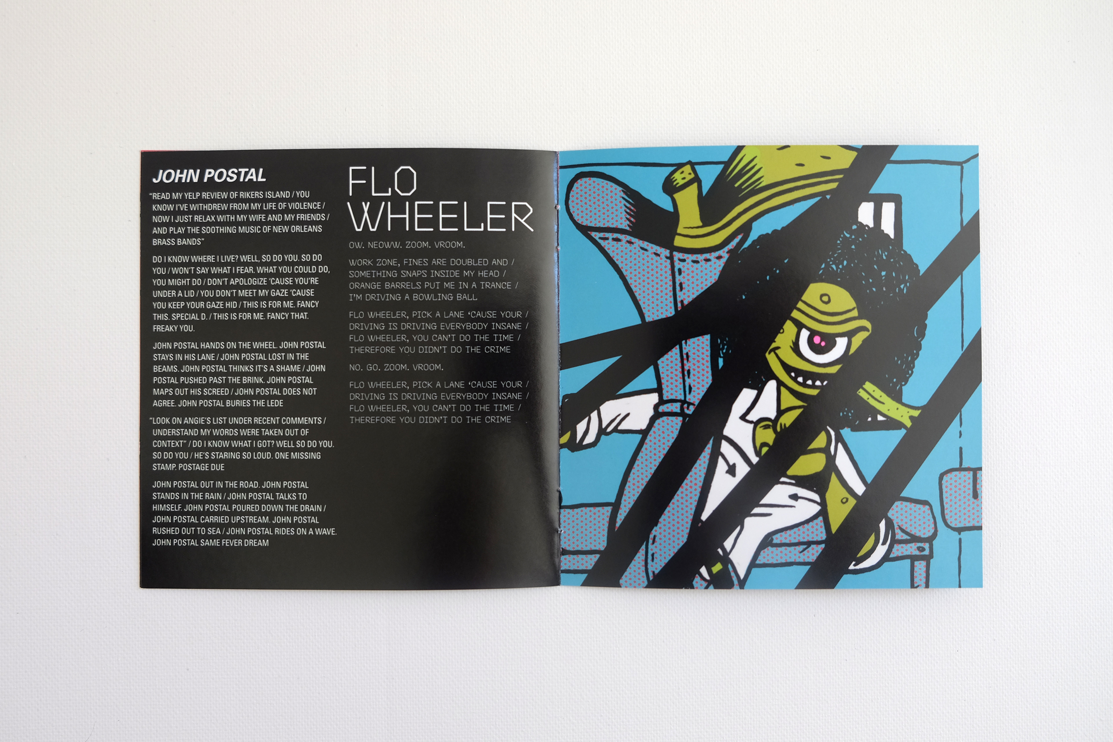 Based on The Escape Team comic book—TMBG’s collaboration with David Cowles—this album features a wild story starring mutant characters. Characters inspire songs inspire album package. I created CD and vinyl packaging that completed the trifecta including lyrics in the line notes, neon spot colors and moire patterns. Get it here.