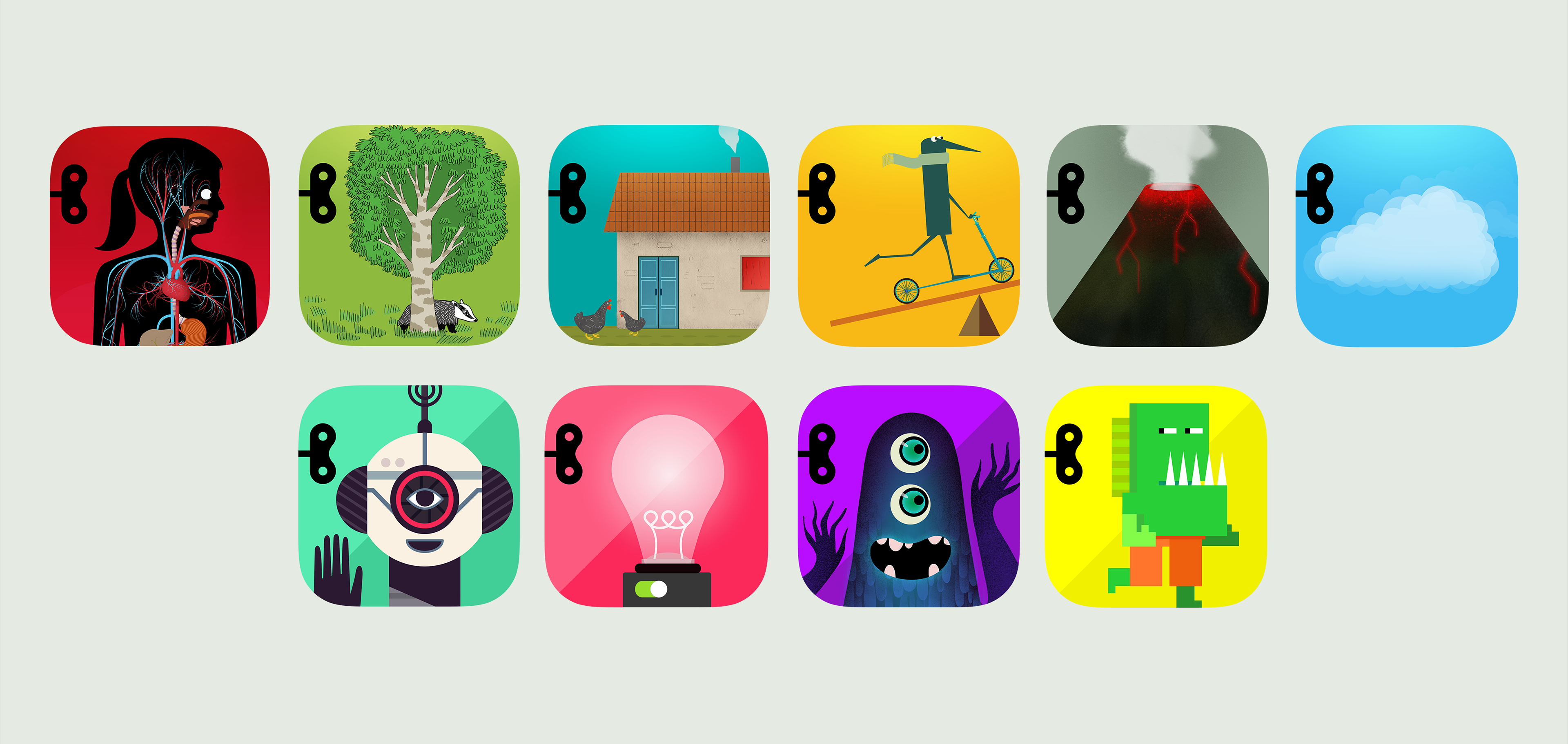 TInybop has two series of apps that needed distinctive branding to differentiate content, while always pointing back to the Tinybop brand. Each title is always illustrated by a different artist, putting even more weight on tying the series together with the aspiration that users will want to collect them all.